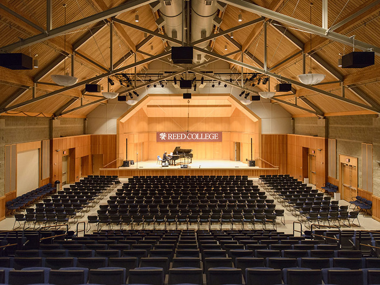 Kaul Auditorium is a state-of-the-art auditorium with superb acoustics that can accommodate up to 699 people located on the Reed College campus in Southeast Portland, approximately 10 minutes from downtown. ADA seating is available on the main floor, but is not available in the rear riser section.